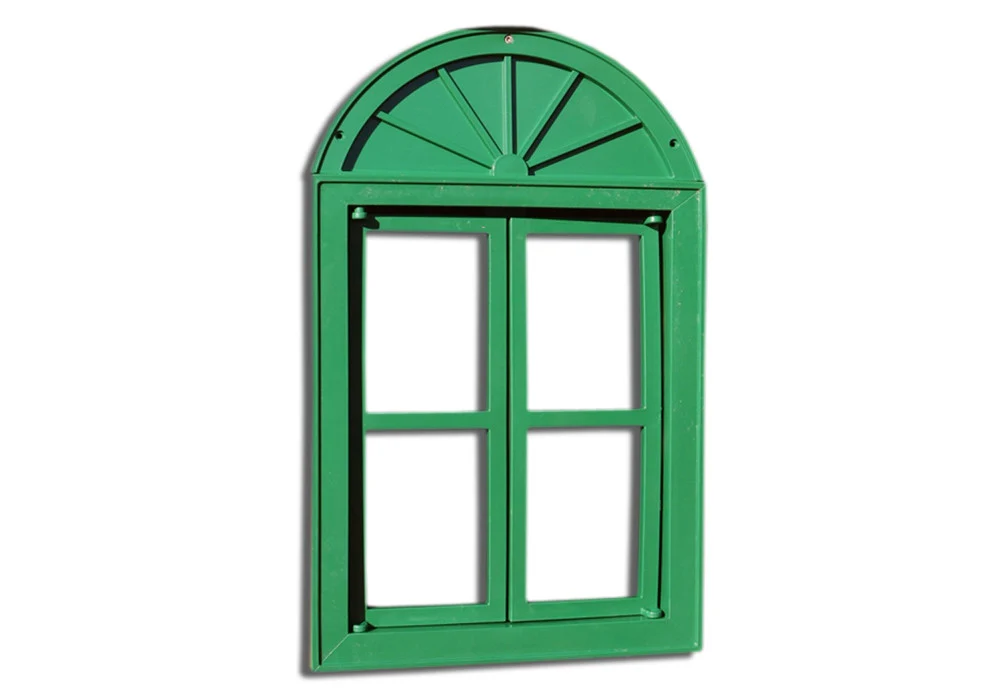 The Window Kit from Gorilla Playsets is a great addition to any swing set that has an enclosed playhouse at the top. The Window Kit in green, and opens with functioning window and working shutters! It lets in more light and more breeze, to keep the playhouse comfortable while kids are playing. It comes with a decorative frame including a sunburst. The sunburst (included) is a separate from the window itself, so the pieces can be used together or separately!