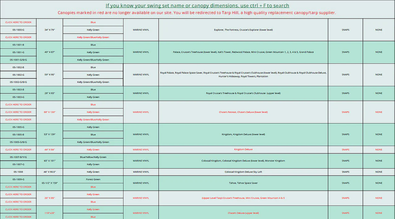 We want to ensure you order the correct replacement canopy, so please review the document below to find the canopy you need.